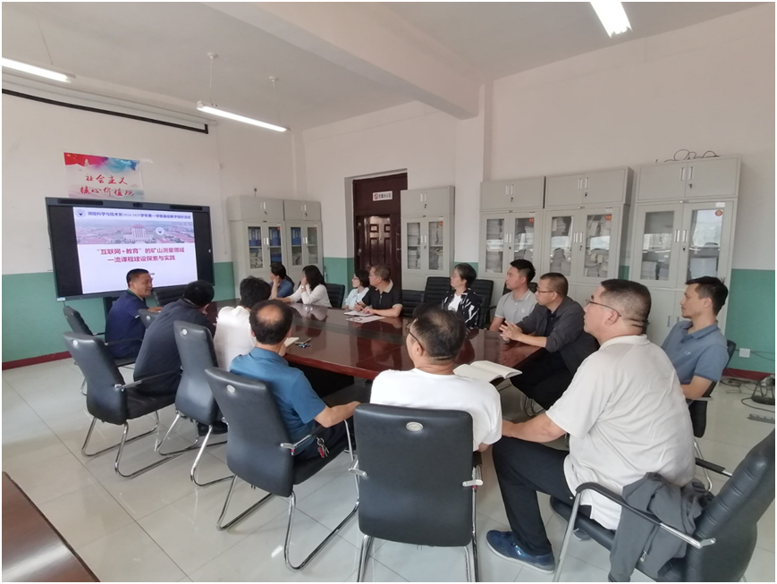 赵尚民对测绘系近期的教学工作进行了安排,廉旭刚副教授做了“‘互联网+教育’的矿山测量领域一流课程建设探索与实践”的主题报告。本报告包括成果主要内容及解决的问题、成果创新性及特色、成果成效和推广应用情况三部分内容,翔实的描述了矿山测量领域一流课程建设的成果、特色和遇到的问题,为测绘系所有教师一流课程建设提供了重要参考和指导。