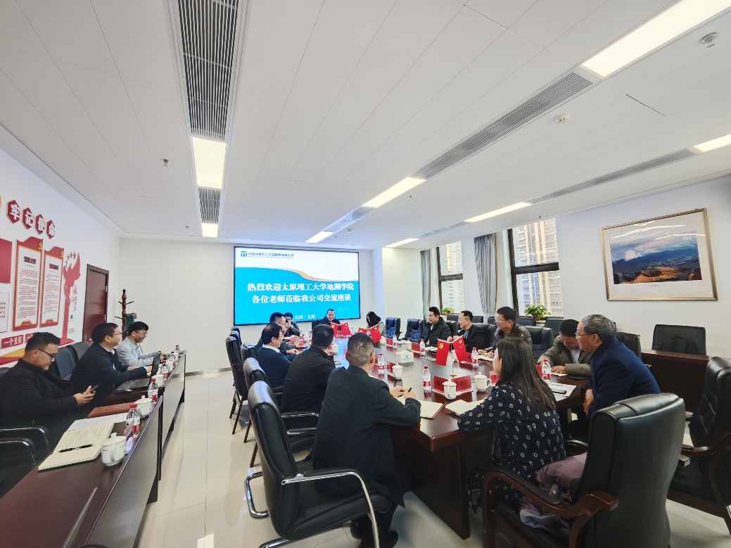 山西冶金岩土工程勘察有限公司申欣凯总经理、山西省地质调查院有限公司李爱民董事长、郭红党总经理、煤炭工业太原设计研究院集团有限公司冯蕊总经理及各公司的部门负责人参加了调研活动。企业负责人也表示愿意通过院企合作,发挥高校的科研优势解决企业的难题,合作共建省级科研平台,支持青年博士、优秀员工到企业锻炼和实习,希望企业优秀人才也能参与公司产品,为公司的建设发展和人才培养提供良好的校外实践基地。